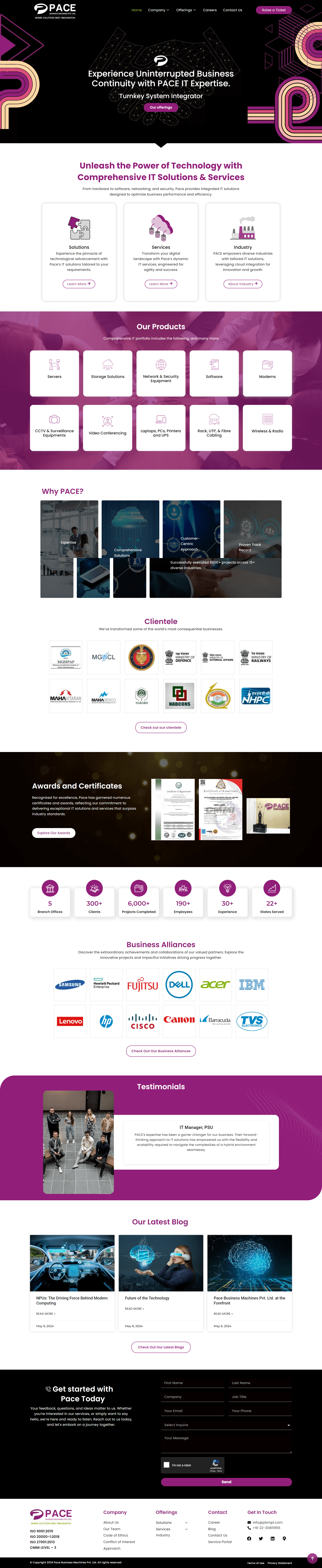 In partnership with MWD, Pace Business Machines embarked on a journey to modernize their digital footprint. The goal was to create a user-friendly, informative website that showcases their wide range of IT services, solutions, and products while maintaining a professional and secure digital environment.