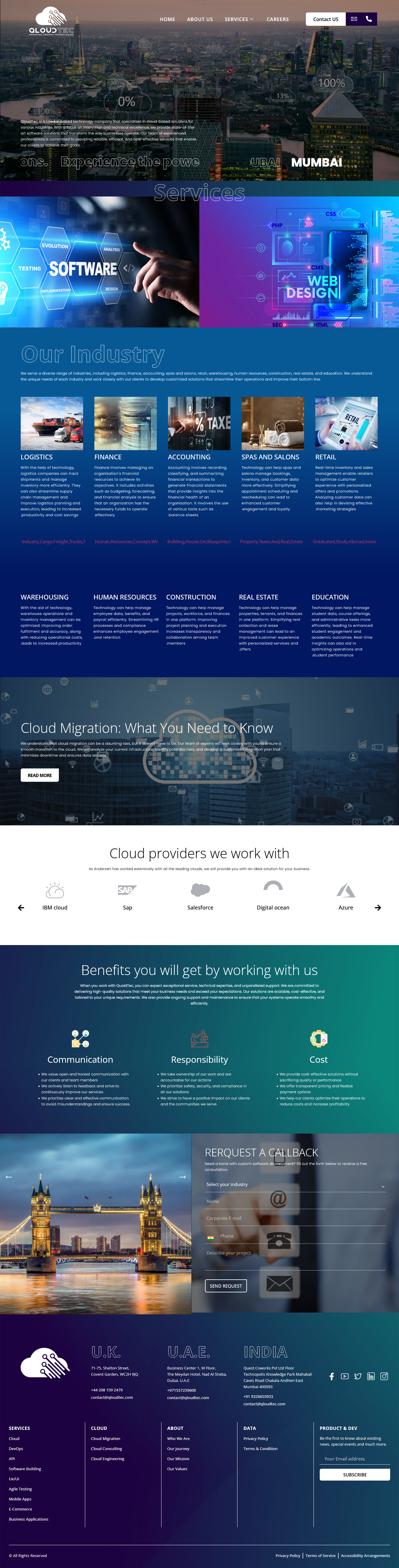 The website features a user-friendly content management system (CMS) on WordPress, allowing QloudTech to effortlessly update and manage content. This functionality ensures the site remains current with the latest information, providing clients with accurate and relevant content at all times.